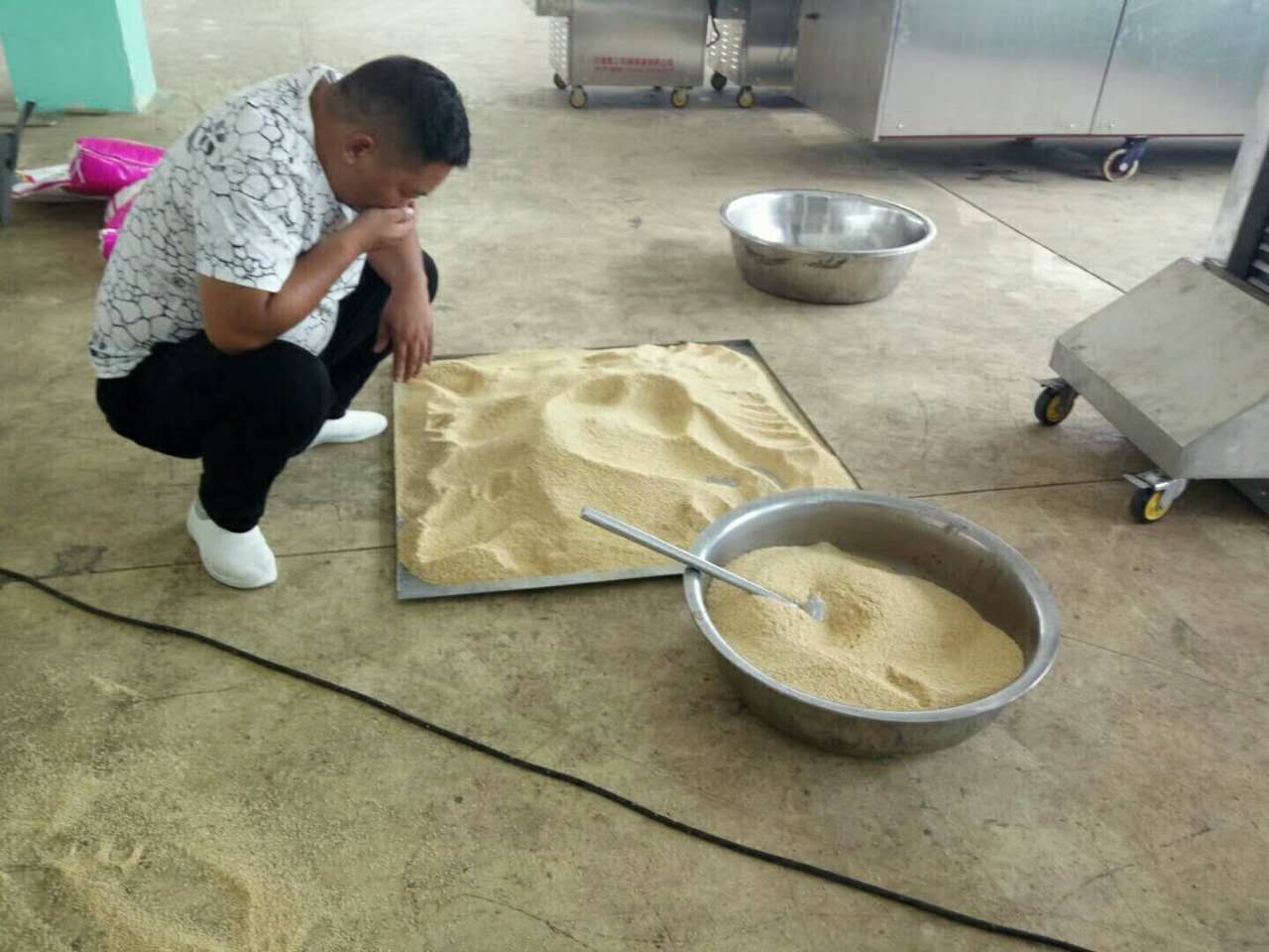 湖北做芝麻糖老板来厂考察电磁炒货机,炒脱皮芝麻试机中发布日期:2017/9/7 16:09:44 浏览次数: