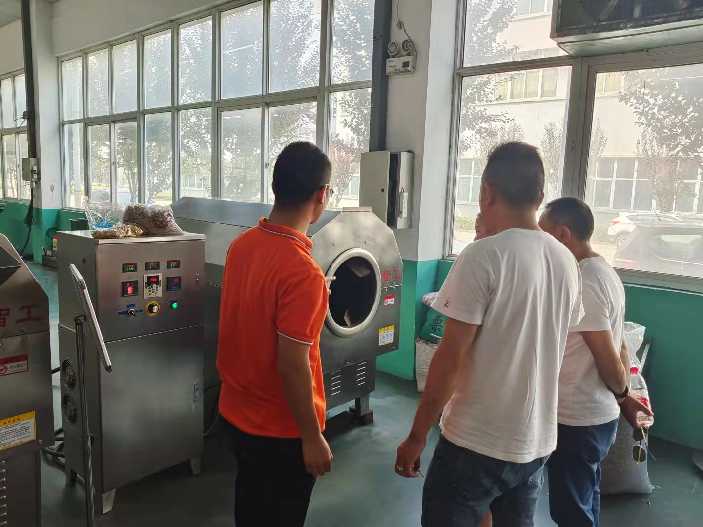现场试机许昌智工DCCZ7-10型电磁炒货机炒制瓜子