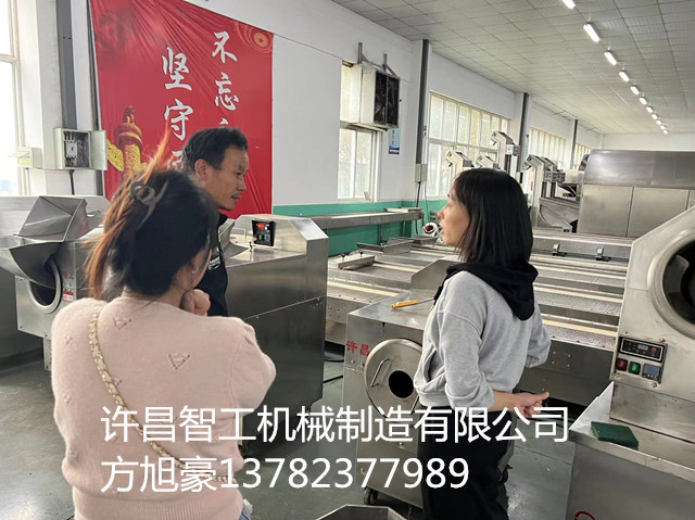 2023年10月23日,河南客户一行二人来厂考察小型电磁炒货机炒制瓜子。 许昌智工小型电磁炒货机可炒制瓜子花生 花生米 栗子腰果等非常适合门店现炒现卖,操作简单,使用方便,干净卫生,质量稳定炒制效果好