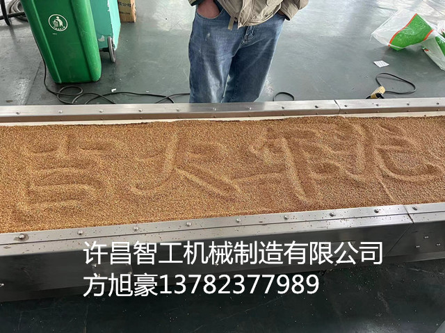 2月17日,河南郑州客户带500斤亚麻籽来厂试机电磁流水线炒制。 许昌智工八米电磁流水线一小时可炒制亚麻籽2000斤,产能高效果好,节能又环保。